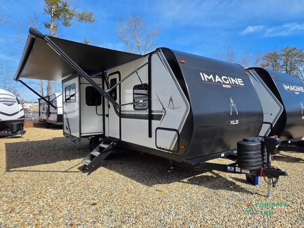 Let your imagination run wild with the possibilities that the Grand Design Imagine XLS travel trailer can provide! The Imagine XLS has been built with oversized tank capacities, an extra-large 2" fresh water drain valve, a ducted A/C system, a power tongue jack, and a heated and enclosed underbelly with suspended tanks. There is a designated heat duct to the subfloor and a residential ductless heating system throughout. For outdoor adventures, the electric awning with LED lights will enable you to stay protected, and the Tuff-Ply pass-thru flooring will withstand your adventures. You will also love the XLS Solar Package that comes with a 200W roof mounted solar panel, a 30 Amp charge controller, a 12V 10 cu. ft. refrigerator, and roof mounted quick connect plugs!