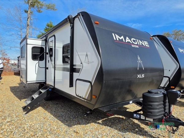This Imagine XLS travel trailer was constructed just for you and your significant other or camping buddy! It has all of the essentials you could need, like a full rear bathroom with a residential walk-in shower, a theater dinette with a removable table where you can eat your meals, a full kitchen with a microwave and three-burner range with an oven, and a private bedroom with a walk-around queen-size bed so that both of you have your own side. There are a couple of extras that will make your time away even more special, like the LED HDTV, flip-up countertop extension, and exterior spray port!