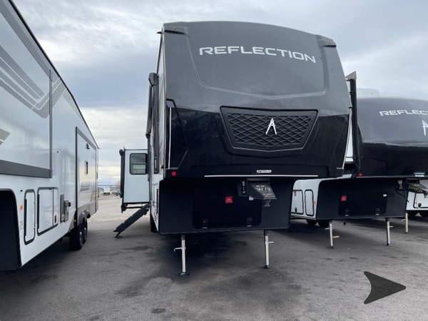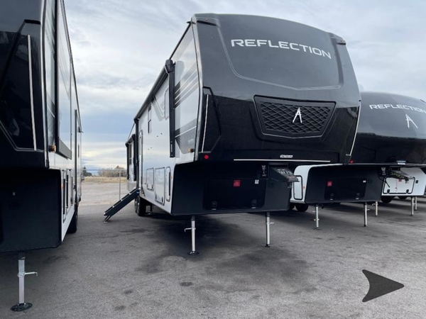 With any Reflection fifth wheel by Grand Design, you will have a solar panel for off-grid camping and a 60 amp charge controller and inverter prep, a Universal All-In-One docking station, unobstructed pass-through storage, and Goodyear Endurance tires. Each is constructed of gel coat exterior sidewalls, residential 5" truss rafters, walk-on roof decking, a fiberglass and radiant foil roof and front cap insulation plus laminated aluminum framed side walls, roof and end walls in slide rooms. Head inside to enjoy residential hardwood cabinet doors, premium Congoleum flooring, a spacious shower with a glass door, and many more comforts!