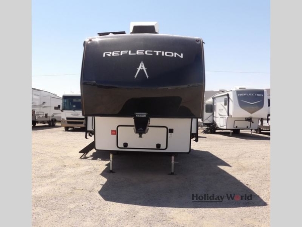 With any Reflection 150 Series fifth wheel by Grand Design, there is more available payload capacity and a broader range of half-ton trucks capable of towing this fifth wheel, and no slider hitch is needed thanks to the 90-degree turning radius which makes them short bed friendly and easier to tow. The mandatory Ultimate Power package provides a "One-Touch" automatic leveling system and a detachable power cord with LED light for easy setup, plus motion sensor pass-through lighting and entry lighting, and the Tire Linc TPMS will help you stay safe on the road. The interior offers residential cabinetry and premium Congoleum flooring, to the booth dinette and residential-style window treatment. Make your refined decision today!
