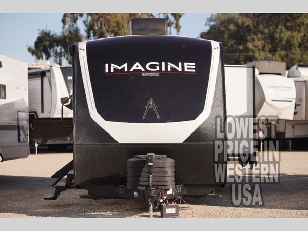 Just imagine leaving the world behind and secluding yourself away with your favorite people in your Grand Design Imagine travel trailer! The Imagine has been designed to enjoy camping and includes a high-capacity furnace, a heated and enclosed underbelly with suspended tanks, a designated heat duct to the subfloor, and a high-density roof insulation with attic vent. You'll have a large panoramic window to let natural lighting in and an adjustable Power Awning with LED Lights for those night gatherings. The exclusive drop-frame pass-through storage compartment is going to allow you to bring along lots of equipment, and the universal docking station is an all-in-one location for utilities and hook-ups. You'll also have oversized tank capacities so that you can fill and empty your tanks less often.
