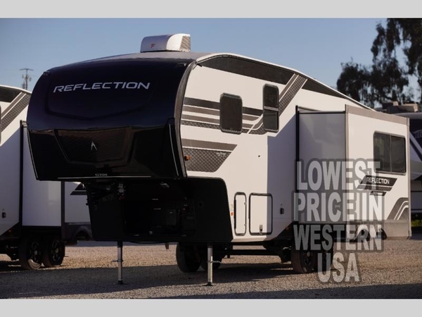 Feel right at home in this Reflection 150 Series with a private bedroom that includes a walk-around queen bed with storage on each side, windows, and a space savings sliding door. The full bathroom offers a walk-in shower, storage for your linens and a sliding door for easy access. When you get hungry, the cook will have an L-shaped kitchen area to make meals, plus full amenities including a 30" microwave, a flip-up counter extension, a pantry for your dry goods and a 16 cu. ft. refrigerator to store lots of food and cold beverages. You can dine at the rear U-shaped dinette lounge and enjoy the view out of all the windows or outside under the 18' electric awning. And the 78" theatre seating will be a nice place to relax and watch the 40" LED HDTV.
