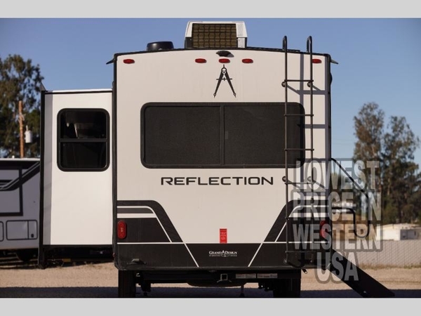 With any Reflection 150 Series fifth wheel by Grand Design, there is more available payload capacity and a broader range of half-ton trucks capable of towing this fifth wheel, and no slider hitch is needed thanks to the 90-degree turning radius which makes them short bed friendly and easier to tow. The mandatory Ultimate Power package provides a "One-Touch" automatic leveling system and a detachable power cord with LED light for easy setup, plus motion sensor pass-through lighting and entry lighting, and the Tire Linc TPMS will help you stay safe on the road. The interior offers residential cabinetry and premium Congoleum flooring, to the booth dinette and residential-style window treatment. Make your refined decision today!