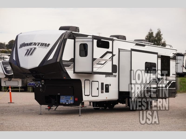 The Momentum fifth wheel toy haulers by Grand Design are built for four seasons of travel with your off-road toys and include luxurious accommodations throughout for extreme living! Each is constructed to a superior standard with the fully enclosed and heated underbelly and storage area, the 5-sided aluminum cage, and the triple insulated garage floor. The MORryde CRE3000 suspension system and rubber pin box, plus the upgraded axle hangers provide the performance and smooth towing you desire, while the interior offers luxury such as color changing LED accent lighting, hardwood cabinet doors with hidden hinges, and a central vacuum system. Each toy hauler also includes four packages, including the Garage Package with Tuff-Ply gas and oil-resistant flooring, the Weather-Tek Package with a Stealth AC System, and the Interior Luxury Package with solid surface countertops!