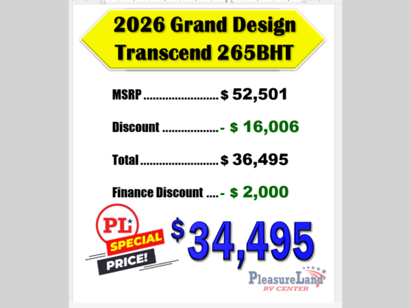 With any Transcend travel trailer by Grand Design, you will enjoy upscale appointments and convenient amenities to make each camping experience one to remember! The Quad Seal technology, residential insulated walls, plus heated and enclosed underbelly with suspended tanks make these units solid and durable. There is a black automotive glass door outside, along with a Safe-T-Rail assist on the main entry door, backup camera prep, and a universal docking station. JBL interior and exterior speakers plus a JBL head unit will let you listen to your favorite tunes as you visit under the power awning with LED strip lights. Inside, you'll enjoy multiple outlets to keep your gadgets charged, thermoformed and seamless countertops, and a 6' 6" interior height so you won't feel closed in. The Solar Prep Package will allow you to enjoy off-grid capabilities with a 200W solar panel, which is wired for up to 600W, a 30 AMP Bluetooth solar controller, a 2000W inverter prep, and more!