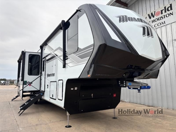 The Momentum fifth wheel toy haulers by Grand Design are built for four seasons of travel with your off-road toys and include luxurious accommodations throughout for extreme living! Each is constructed to a superior standard with the fully enclosed and heated underbelly and storage area, the 5-sided aluminum cage, and the triple insulated garage floor. The MORryde CRE3000 suspension system and rubber pin box, plus the upgraded axle hangers provide the performance and smooth towing you desire, while the interior offers luxury such as color changing LED accent lighting, hardwood cabinet doors with hidden hinges, and a central vacuum system. Each toy hauler also includes four packages, including the Garage Package with Tuff-Ply gas and oil-resistant flooring, the Weather-Tek Package with a Stealth AC System, and the Interior Luxury Package with solid surface countertops!