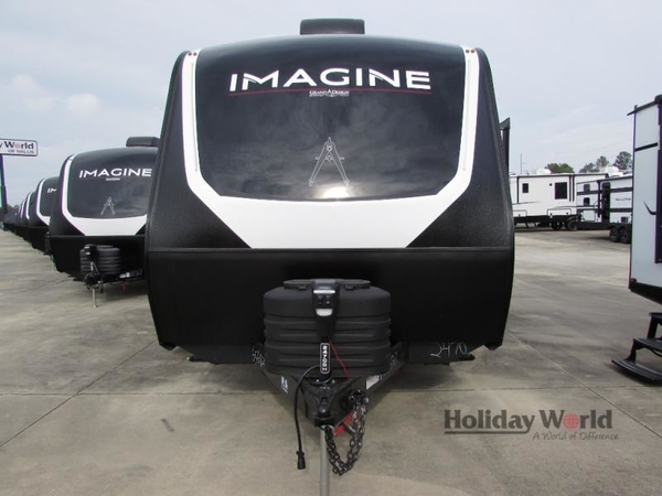 Just imagine leaving the world behind and secluding yourself away with your favorite people in your Grand Design Imagine travel trailer! The Imagine has been designed to enjoy camping and includes a high-capacity furnace, a heated and enclosed underbelly with suspended tanks, a designated heat duct to the subfloor, and a high-density roof insulation with attic vent. You'll have a large panoramic window to let natural lighting in and an adjustable Power Awning with LED Lights for those night gatherings. The exclusive drop-frame pass-through storage compartment is going to allow you to bring along lots of equipment, and the universal docking station is an all-in-one location for utilities and hook-ups. You'll also have oversized tank capacities so that you can fill and empty your tanks less often.