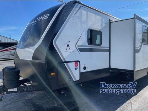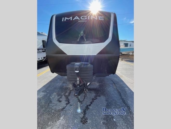 Just imagine leaving the world behind and secluding yourself away with your favorite people in your Grand Design Imagine travel trailer! The Imagine has been designed to enjoy camping and includes a high-capacity furnace, a heated and enclosed underbelly with suspended tanks, a designated heat duct to the subfloor, and a high-density roof insulation with attic vent. You'll have a large panoramic window to let natural lighting in and an adjustable Power Awning with LED Lights for those night gatherings. The exclusive drop-frame pass-through storage compartment is going to allow you to bring along lots of equipment, and the universal docking station is an all-in-one location for utilities and hook-ups. You'll also have oversized tank capacities so that you can fill and empty your tanks less often.
