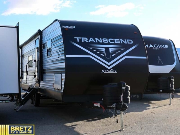 The customer-focused, quality-built Transcend Xplor travel trailers by Grand Design are your ticket to fun and adventure. You will appreciate the power tongue jack when it comes time to set up, as well as the all-in-one utility center and the detachable power cord with an LED light. These models include many outlets throughout, USB ports to charge your gadgets, and a JBL exterior speaker to listen to your favorite tunes. The interior of the Transcend Xplor will have you feeling right at home with upgraded residential furniture, residential countertops, residential cabinet doors, and the list goes on!