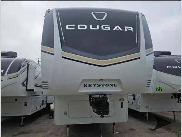 Spend more time having fun and less time worrying about your RV with the Keystone Cougar fifth wheel! These units have all that you will need for excellent vacations. The interior comes with 5/8" one-piece DynaSpan® flooring, tall slide outs for added comfort and head room, night roller shades throughout, and residential, shaker style hardwood cabinet doors and drawers. You will also enjoy decorative crown molding, a 5,500 BTU electric fireplace with thermostat control and remote, and a Max Air exhaust fan with rain sensor. The exterior is also fully outfitted with a convenience center, friction-hinge entry door, electric four-point auto leveling system, and slam-latch baggage doors. Each model is available with the optional Hero Edition. By choosing this edition, you can help support our nation's heros and their families by contributing to the Wounded Warrior Project. This optional package features an industry exclusive full-body paint matte finish, frameless windows, a glass entry door, blackout rims, and green LED exterior accent lighting; see dealer for more details!