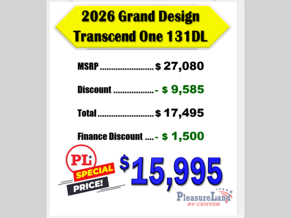 Grand Design Transcend One travel trailer 131DL highlights: