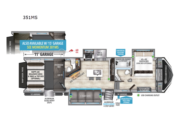 Grand Design Momentum M-Class toy hauler 351MS highlights: