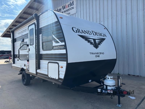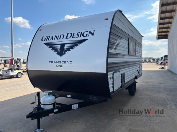 With any Transcend One travel trailer by Grand Design, you will enjoy lightweight towing thanks to their single-axle. There are many interior comforts to make camping easier than ever, such as recessed lighting, residential countertops, and a 6' 6" interior height. Each model is constructed with a heated and enclosed underbelly with suspended tanks, a moisture barrier floor enclosure, and Thermofoil over the roof and front cap for added protection. And a JBL sound system will let you listen to tunes as you visit under the power awning with a Fusion light!