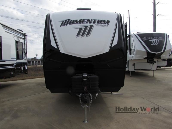 Are you looking for adventure and fun? The Momentum G-Class toy hauler by Grand Design will help you find it! You can explore during any season you choose with the Insulation Package that includes a heated and enclosed underbelly with suspended tanks, a high-capacity furnace, a moisture barrier floor enclosure, and cabinet-mounted heat ducts. Each model includes a high capacity water pump, a dovetail rear end, and 2,500-LB tie-downs anchored into the chassis. Throughout the Momentum G-Class interior, you'll enjoy many comfortable features like large panoramic windows, a shower skylight, USB chargers in the bedroom, and residential cabinetry.