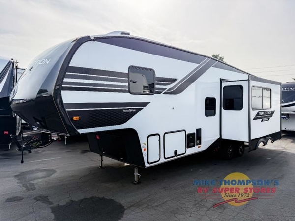 With any Reflection 150 Series fifth wheel by Grand Design, there is more available payload capacity and a broader range of half-ton trucks capable of towing this fifth wheel, and no slider hitch is needed thanks to the 90-degree turning radius which makes them short bed friendly and easier to tow. The mandatory Ultimate Power package provides a "One-Touch" automatic leveling system and a detachable power cord with LED light for easy setup, plus motion sensor pass-through lighting and entry lighting, and the Tire Linc TPMS will help you stay safe on the road. The interior offers residential cabinetry and premium Congoleum flooring, to the booth dinette and residential-style window treatment. Make your refined decision today!