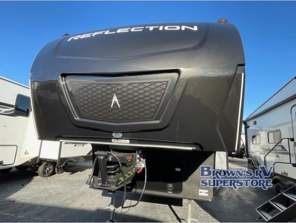 With any Reflection 150 Series fifth wheel by Grand Design, there is more available payload capacity and a broader range of half-ton trucks capable of towing this fifth wheel, and no slider hitch is needed thanks to the 90-degree turning radius which makes them short bed friendly and easier to tow. The mandatory Ultimate Power package provides a "One-Touch" automatic leveling system and a detachable power cord with LED light for easy setup, plus motion sensor pass-through lighting and entry lighting, and the Tire Linc TPMS will help you stay safe on the road. The interior offers residential cabinetry and premium Congoleum flooring, to the booth dinette and residential-style window treatment. Make your refined decision today!