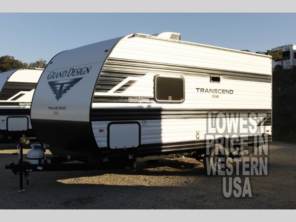 With any Transcend One travel trailer by Grand Design, you will enjoy lightweight towing thanks to their single-axle. There are many interior comforts to make camping easier than ever, such as recessed lighting, residential countertops, and a 6' 6" interior height. Each model is constructed with a heated and enclosed underbelly with suspended tanks, a moisture barrier floor enclosure, and Thermofoil over the roof and front cap for added protection. And a JBL sound system will let you listen to tunes as you visit under the power awning with a Fusion light!