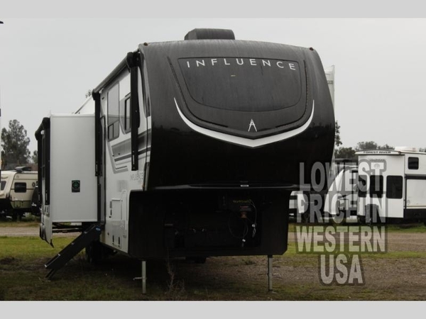 Any Grand Design Influence fifth wheel features five-sided aluminum cage construction with a walk-on roof and a fully enclosed underbelly with heated tanks and storage for all weather camping. For peace of mind, the MORryde CRE3000 Suspension system will provide safe and smooth towing, and the 101" widebody construction offers all the room you need and that is before multiple slides are fully engaged. You will appreciate the Keyed-Alike locks, slam-latch baggage doors with magnetic door catches, exterior security light, and SolidStep entry steps. On the inside, Congoleum flooring, premium roller shades for privacy, a hallway handrail for safety, and nightstands with USB ports to keep all of your electronics fully charged. You will also love the On Demand tankless water heater when showering, plus the added heat and ambiance from an electric fireplace, and so much more!