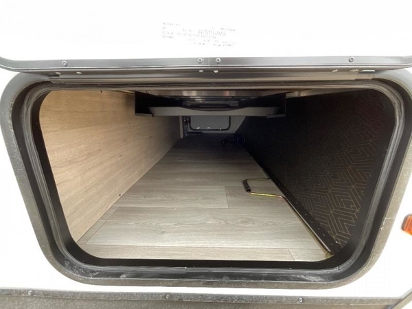 Pack your bags and head out on a fun camping trip in this travel trailer! The front queen bed offers a comfortable place to sleep at after taking off your footwear and place them in the shoe storage. You can make meals on the cooktop or in the convection microwave. The full rear corner bathroom has a walk-in shower with an oversized vanity to easily get ready each day. Outside, you'll find a spray port, an unobstructed pass-thru storage, and an interior/exterior table to use at your convenience.