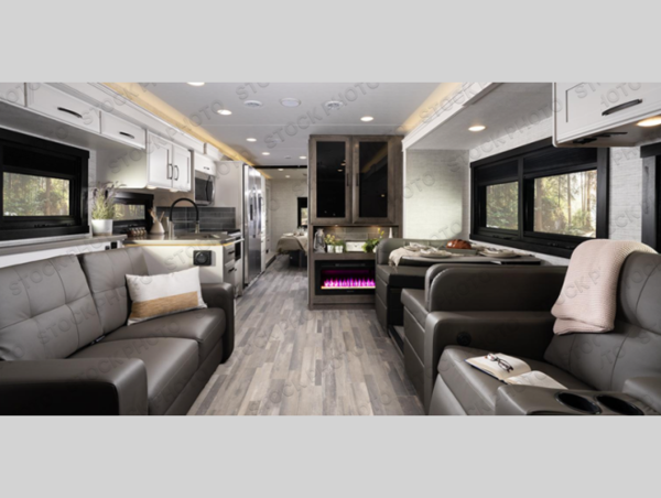 The Jayco Precept Class A gas motorhome comes with some features that you'll only find on a Jayco product, like the JRide Plus which offers you a powerful blend of precise handling and renowned stability on the road and the Firefly total coach control system which allows you to control your coach's operations from just about anywhere with your phone. You'll find two-point lap seatbelts in all designated seating locations, and the one-piece, seamless fiberglass front and rear caps resist wear and tear over the years. The Precept also offers you the lightest yet strongest construction in the industry with the Stronghold VBL lamination on the roof, floor, and sidewalls. You'll also be very pleased to find a 120" panoramic windshield, automatic hydraulic leveling jacks, and a 5,500W generator with auto-gen start.