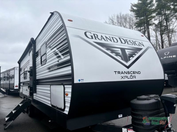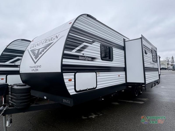 The customer-focused, quality-built Transcend Xplor travel trailers by Grand Design are your ticket to fun and adventure. You will appreciate the power tongue jack when it comes time to set up, as well as the all-in-one utility center and the detachable power cord with an LED light. These models include many outlets throughout, USB ports to charge your gadgets, and a JBL exterior speaker to listen to your favorite tunes. The interior of the Transcend Xplor will have you feeling right at home with upgraded residential furniture, residential countertops, residential cabinet doors, and the list goes on!