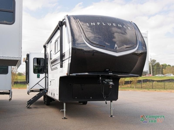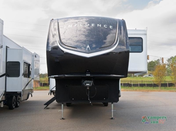 Every Grand Design Influence fifth wheel is constructed with durability and comfort in mind. Features include five-sided aluminum cage construction, a walk-on roof, and a fully enclosed underbelly with heated tanks, allowing you to camp confidently in a variety of climates. The MORryde CRE3000 Suspension System ensures smooth, stable towing, while the 101" widebody design delivers exceptional interior spaceeven before the slides are deployed.