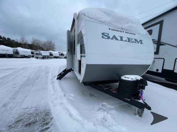 The Salem travel trailers are packed with hassle-free camping amenities! There are a variety of floorplans to choose from between three different regions. The heated and enclosed Accessibelly will help protect against the elements and debris during transport, and the exterior retro/metal redesign is sure to be eye-catching! There are stylish roller shades inside, along with updated backsplash, elegant curtain rods and curtains, plus many more interior comforts! Choose a Salem travel trailer today for quality and value!