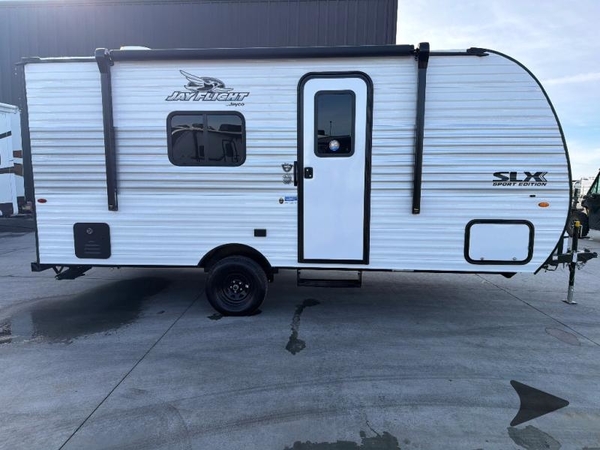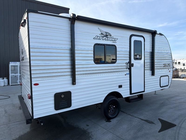 The Jayco Jay Flight SLX travel trailer is quite easy to own because it is lightweight for an easier towing experience. Built on a fully integrated A-frame with galvanized-steel, impact-resistant wheel wells, the Jay Flight SLX has quality at its very foundation. That quality continues on to the electric self-adjusting brakes, easy-lube hubs, Magnum Truss roof system, and LP quick connect. Some of what the mandatory Customer Value Package includes is backup camera prep, Keyed-Alike entry and baggage doors, marine grade exterior speakers, and an on-demand tankless water heater.