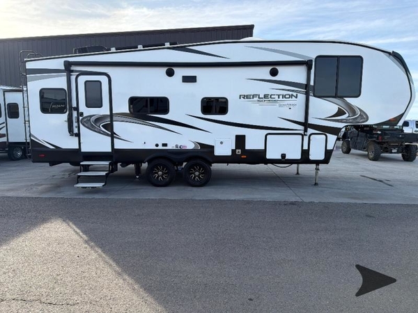 With any Reflection 150 Series fifth wheel by Grand Design, there is more available payload capacity and a broader range of half-ton trucks capable of towing this fifth wheel, and no slider hitch is needed thanks to the 90-degree turning radius which makes them short bed friendly and easier to tow. The mandatory Ultimate Power package provides a "One-Touch" automatic leveling system and a detachable power cord with LED light for easy setup, plus motion sensor pass-through lighting and entry lighting, and the Tire Linc TPMS will help you stay safe on the road. The interior offers residential luxury from the cabinetry and premium congoleum flooring, plus the booth dinette to the residential-style window treatment. Make your refined decision today!