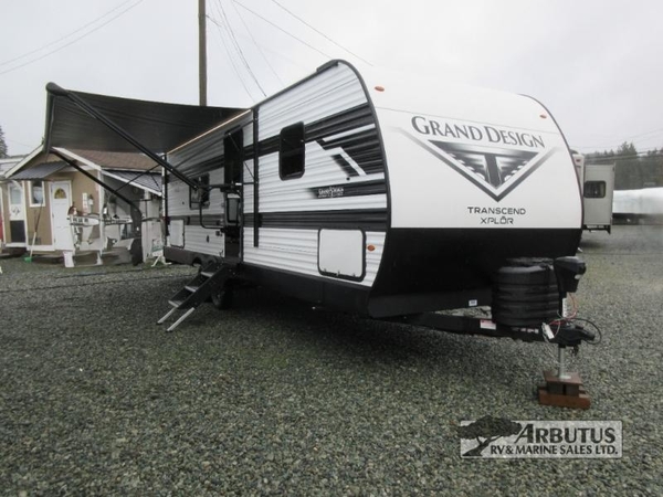 The customer-focused, quality-built Transcend Xplor travel trailers by Grand Design are your ticket to fun and adventure. You will appreciate the power tongue jack when it comes time to set up, as well as the all-in-one utility center and the detachable power cord with an LED light. These models include many outlets throughout, USB ports to charge your gadgets, and a JBL exterior speaker to listen to your favorite tunes. The interior of the Transcend Xplor will have you feeling right at home with upgraded residential furniture, residential countertops, residential cabinet doors, and the list goes on!