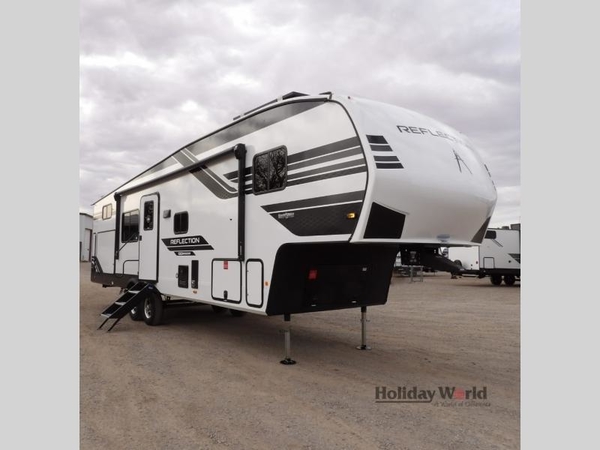 Each Reflection 100 Series fifth wheel by Grand Design is affordable and packed with luxury for unforgettable camping memories! The MorRyde CRE3000 suspension system and Goodyear Endurance tires will provide smooth towing from home to campground. And the solar package with a 180W solar panel, 60 Amp charge controller and 12V refrigerator will allow you to camp for longer periods of time and in more locations! A heated and enclosed underbelly with circulating heat is included in the Arctic 4-Seasons Protection Package, along with a double insulated roof and front cap, and thermofoil insulation under the holding tanks so you can camp all year long if you choose. You will appreciate having an on-demand water heater for hot showers after exploring, and the universal all-in-one docking station will let you monitor your RVs tanks levels and functions with ease. These models also include many luxurious interior features, such as premium Congoleum flooring, pleated shades, residential cabinetry, and matte black fixtures and hardware. Don't let the Reflection 100 Series fifth wheels pass you by!