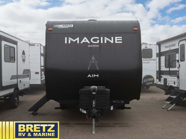 Aim for new destinations in one of these Grand Design Imagine AIM travel trailers! They are constructed to a superior standard with the 4-Seasons Protection Package that features a heated and enclosed underbelly with suspended tanks, a moisture barrier floor enclosure, a double insulated roof and front wall, and more. There is backup camera prep outside, along with a universal docking station, and a power tongue jack. You are sure to feel at home with residential cabinetry, premium window treatments, residential countertops, and a spacious walk-in shower to name a few comforts. The on-demand tankless water heater is a feature you won't want to camp without and the hi-definition LED TV will ensure you'll never go bored on rainy days. Each model also comes with four AIM packages; the Peace of Mind Package, The Ultimate Power Package, The 4-Season Protection Package, and the Solar Package!