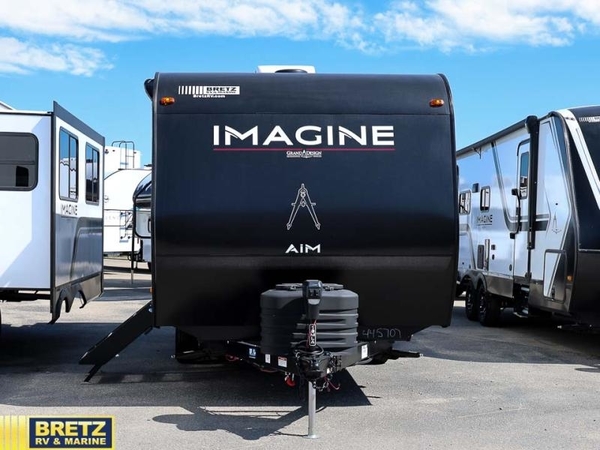 Aim for new destinations in one of these Grand Design Imagine AIM travel trailers! They are constructed to a superior standard with the 4-Seasons Protection Package that features a heated and enclosed underbelly with suspended tanks, a moisture barrier floor enclosure, a double insulated roof and front wall, and more. There is backup camera prep outside, along with a universal docking station, and a power tongue jack. You are sure to feel at home with residential cabinetry, premium window treatments, residential countertops, and a spacious walk-in shower to name a few comforts. The on-demand tankless water heater is a feature you won't want to camp without and the hi-definition LED TV will ensure you'll never go bored on rainy days. Each model also comes with four AIM packages; the Peace of Mind Package, The Ultimate Power Package, The 4-Season Protection Package, and the Solar Package!