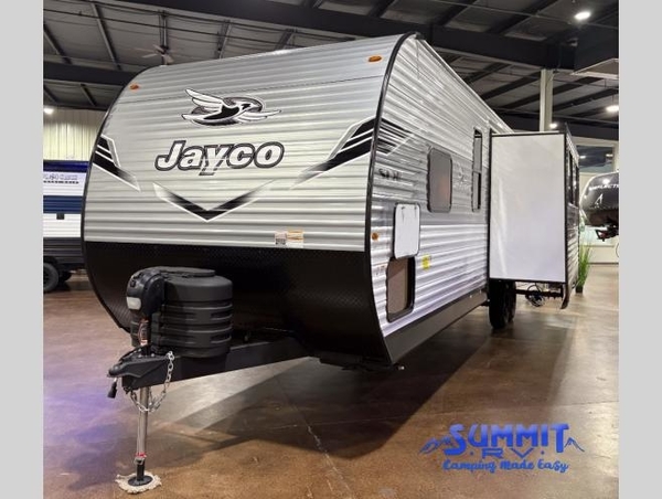 The Jayco Jay Flight SLX travel trailer is quite easy to own because it is lightweight for an easier towing experience. Built on a fully integrated A-frame with galvanized-steel, impact-resistant wheel wells, the Jay Flight SLX has quality at its very foundation. That quality continues on to the electric self-adjusting brakes, easy-lube hubs, Magnum Truss roof system, and LP quick connect. Some of what the mandatory Customer Value Package includes is backup camera prep, Keyed-Alike entry and baggage doors, and an on-demand tankless water heater.