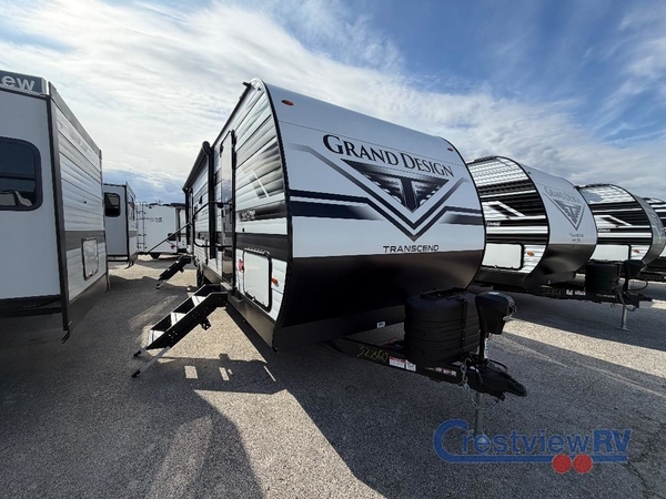 With any Transcend travel trailer by Grand Design, you will enjoy upscale appointments and convenient amenities to make each camping experience one to remember! The Quad Seal technology, residential insulated walls, plus heated and enclosed underbelly with suspended tanks make these units solid and durable. There is a black automotive glass door outside, along with a Safe-T-Rail assist on the main entry door, backup camera prep, and a universal docking station. JBL interior and exterior speakers plus a JBL head unit will let you listen to your favorite tunes as you visit under the power awning with LED strip lights. Inside, you'll enjoy multiple outlets to keep your gadgets charged, thermoformed and seamless countertops, and a 6' 6" interior height so you won't feel closed in. The Solar Prep Package will allow you to enjoy off-grid capabilities with a 200W solar panel, which is wired for up to 600W, a 30 AMP Bluetooth solar controller, a 2000W inverter prep, and more!