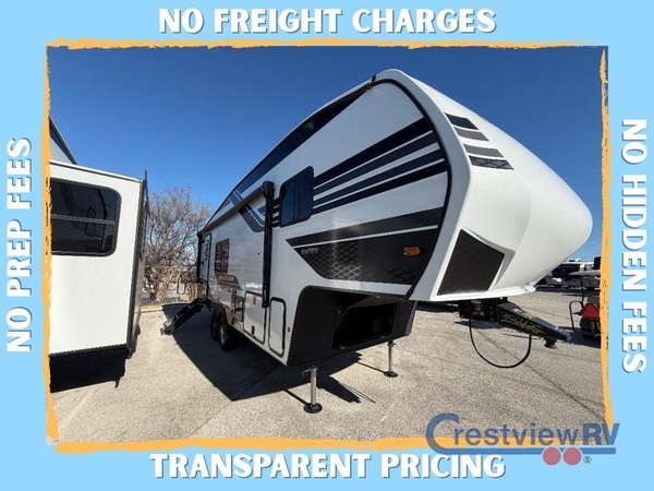 This rear kitchen fifth wheel is sure to meet all of your camping needs! Since the exterior length is only 26' 11", you can easily maneuver in and out of campgrounds. The rear kitchen includes ample counter space to prep meals, a three burner cooktop, and overhead storage for all your necessities. There is a 10 cu. ft. 12V refrigerator within the slide out that also includes the theater seating, and the U-shaped dinette provides a place to dine or play a card game. You will appreciate having convenient storage by the entry door, along with pull-out pet bowls, a functional wardrobe closet in the bedroom and an exterior pass-thru for belongings and camping gear. When you're ready to turn in for the night, the queen bed is sure to bring a great night's rest, while your guests sleep on the booth dinette or optional tri-fold sofa if you replace the theater seating!