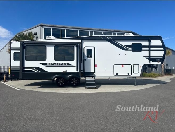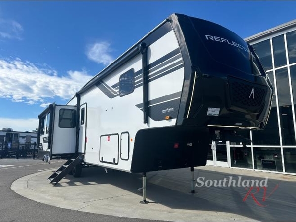 With any Reflection fifth wheel by Grand Design, you will have a solar panel for off-grid camping and a 60 amp charge controller and inverter prep, a Universal All-In-One docking station, unobstructed pass-through storage, and Goodyear Endurance tires. Each is constructed of gel coat exterior sidewalls, residential 5" truss rafters, walk-on roof decking, a fiberglass and radiant foil roof and front cap insulation plus laminated aluminum framed side walls, roof and end walls in slide rooms. Head inside to enjoy residential hardwood cabinet doors, premium Congoleum flooring, a spacious shower with a glass door, and many more comforts!