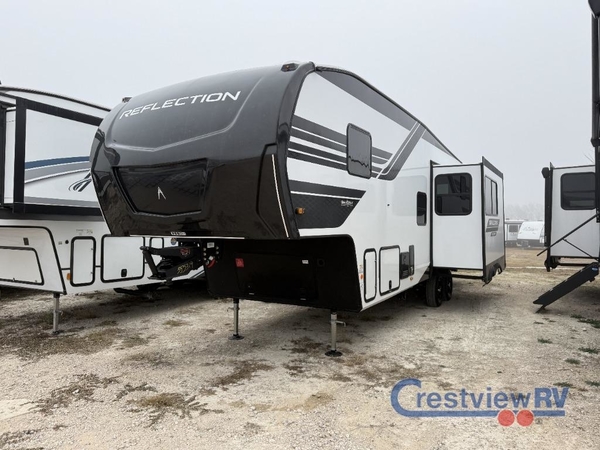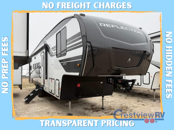 With any Reflection 150 Series fifth wheel by Grand Design, there is more available payload capacity and a broader range of half-ton trucks capable of towing this fifth wheel, and no slider hitch is needed thanks to the 90-degree turning radius which makes them short bed friendly and easier to tow. The mandatory Ultimate Power package provides a "One-Touch" automatic leveling system and a detachable power cord with LED light for easy setup, plus motion sensor pass-through lighting and entry lighting, and the Tire Linc TPMS will help you stay safe on the road. The interior offers residential cabinetry and premium Congoleum flooring, to the booth dinette and residential-style window treatment. Make your refined decision today!