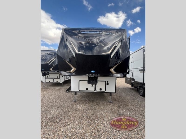 With any Keystone Raptor Carbon Series toy hauler, you will receive a rugged construction from the industry-leading patented 5,000 lb. capacity tie-downs that are welded to the frame to increase hauling safety and security, plus the Dyna Span floor decking in the garage. There is off-grid camping with the Solar Flex which delivers an affordable, high-quality RV solar energy system, and a comfortable interior with the exclusive Omni-Chill technology that offers high-efficiency air conditioning and maximum cooling. Other unexpected conveniences include soft-close hardwood cabinetry allowing you to sneak snacks without others noticing, and designer style flooring throughout for easy care and a stylish look. And each Raptor Carbon Series includes Keystone Exclusives! Now all you have to do is take charge of how you camp in a toy hauler fifth wheel or travel trailer!