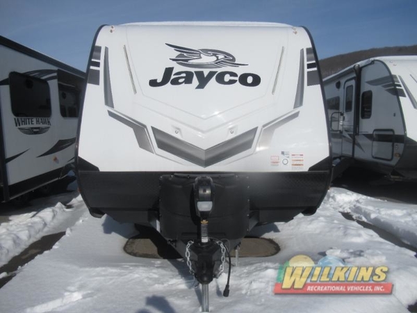 With any Jay Feather travel trailer by Jayco, you will experience an easy-to-tow, lightweight dual axle RV that is built on an American-made frame with an aerodynamic, rounded front profile with a diamond plate to protect against road debris, and includes Azdel composite in the perimeter walls, and Stronghold VBL vacuum-bonded, laminated floor and walls, plus the Magnum Truss roof system. Also included are features in the Customer Value package, and the Sport package which offers aluminum tread entry steps, roof-mount solar prep, an LED TV, and the Glacier package which includes an enclosed underbelly. The interior provides residential-style kitchen countertops with a decorative backsplash, residential plank-style vinyl flooring for easy care, a decorative wallboard for style, and ball-bearing drawer guides with 75 lb. capacity to mention a few of the amenities. Choose your favorite today!