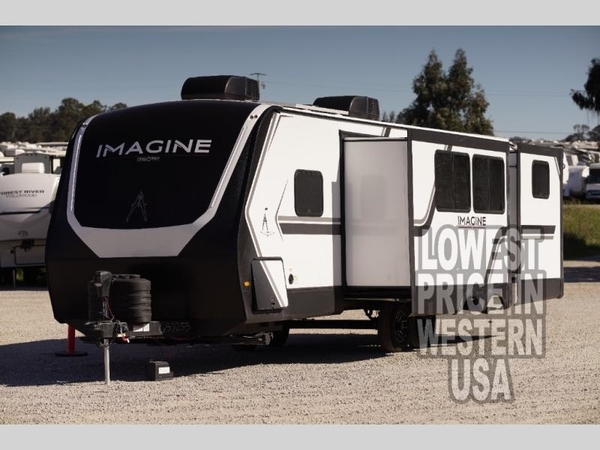 Just imagine leaving the world behind and secluding yourself away with your favorite people in your Grand Design Imagine travel trailer! The Imagine has been designed to enjoy camping and includes a high-capacity furnace, a heated and enclosed underbelly with suspended tanks, a designated heat duct to the subfloor, and a high-density roof insulation with attic vent. You'll have a large panoramic window to let natural lighting in and an adjustable Power Awning with LED Lights for those night gatherings. The exclusive drop-frame pass-through storage compartment is going to allow you to bring along lots of equipment, and the universal docking station is an all-in-one location for utilities and hook-ups. You'll also have oversized tank capacities so that you can fill and empty your tanks less often.