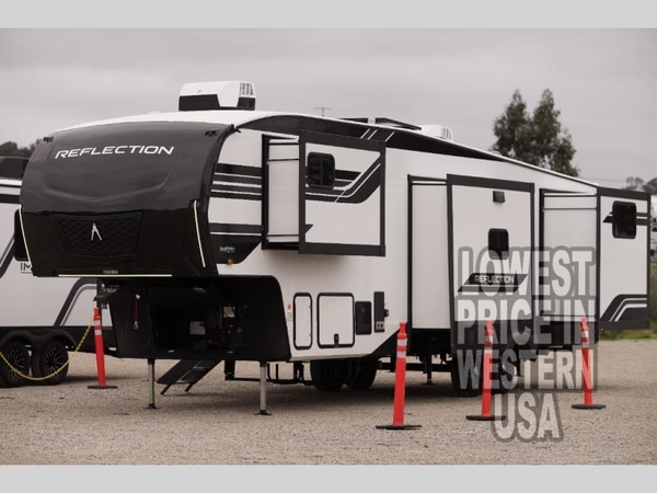 With any Reflection fifth wheel by Grand Design, you will have a solar panel for off-grid camping and a 60 amp charge controller and inverter prep, a Universal All-In-One docking station, unobstructed pass-through storage, and Goodyear Endurance tires. Each is constructed of gel coat exterior sidewalls, residential 5" truss rafters, walk-on roof decking, a fiberglass and radiant foil roof and front cap insulation plus laminated aluminum framed side walls, roof and end walls in slide rooms. Head inside to enjoy residential hardwood cabinet doors, premium Congoleum flooring, a spacious shower with a glass door, and many more comforts!