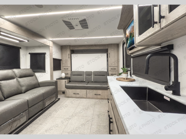 The Murphy bed is the eye-catching feature on this Imagine XLS travel trailer! Not only can it fold away in the morning to reveal a sofa for lounging, but it will also provide you with drawer storage under the sofa. Another functional feature is the theater dinette with a removable table in front, or you can choose the optional U-shaped dinette if you like to gather around for game night. It rests on the single slide so that there is more floor space, and it offers you great comfort while you dine across from the LED HDTV. A full bathroom will keep you clean and fresh with its residential walk-in shower, skylight, linen closet, vanity, toilet, and power vent fan.