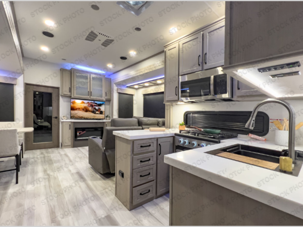 The Momentum fifth wheel toy haulers by Grand Design are built for four seasons of travel with your off-road toys and include luxurious accommodations throughout for extreme living! Each is constructed to a superior standard with the fully enclosed and heated underbelly and storage area, the 5-sided aluminum cage, and the triple insulated garage floor. The MORryde CRE3000 suspension system and rubber pin box, plus the upgraded axle hangers provide the performance and smooth towing you desire, while the interior offers luxury such as color changing LED accent lighting, hardwood cabinet doors with hidden hinges, and a central vacuum system. Each toy hauler also includes four packages, including the Garage Package with Tuff-Ply gas and oil-resistant flooring, the Weather-Tek Package with a Stealth AC System, and the Interior Luxury Package with solid surface countertops!