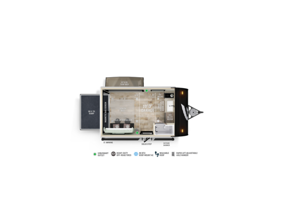Despite its compact size, the Go Lite Boulderback 14 provides impressive space. The fold-up Murphy bed and pop-out tent expand the interior, creating a roomy and comfortable environment. Keep the back ramp door open with the magnetic screen in place to let in a refreshing breeze and stay connected to nature.