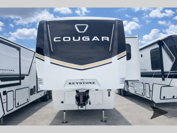 Spend more time having fun and less time worrying about your RV with the Keystone Cougar fifth wheel! These units have all that you will need for excellent vacations. The interior comes hardwood cabinet doors, solid surface kitchen countertops, an Oxygenics shower head and hose, plus a Vent-All window system. You will also appreciate the 12V charging stations throughout, the dual zone Bluetooth audio system, and the on-demand water heater for added comfort. The exterior is also fully outfitted with a convenience center, MaxTurn technology, Lippert axles with anti-lock braking system, and a Curt Road Armor shock absorbing equalizer for smooth towing. Each model is available with the optional Hero Edition. By choosing this edition, you can help support our nation's heros and their families by contributing to the Wounded Warrior Project. This optional package features an industry exclusive full-body paint matte finish, frameless windows, a glass entry door, blackout rims, and green LED exterior accent lighting; see dealer for more details!
