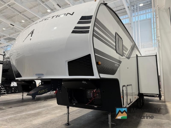 Each Reflection 100 Series fifth wheel by Grand Design is affordable and packed with luxury for unforgettable camping memories! The MorRyde CRE3000 suspension system and Goodyear Endurance tires will provide smooth towing from home to campground. And the solar package with a 180W solar panel, 60 Amp charge controller and 12V refrigerator will allow you to camp for longer periods of time and in more locations! A heated and enclosed underbelly with circulating heat is included in the Arctic 4-Seasons Protection Package, along with a double insulated roof and front cap, and thermofoil insulation under the holding tanks so you can camp all year long if you choose. You will appreciate having an on-demand water heater for hot showers after exploring, and the universal all-in-one docking station will let you monitor your RVs tanks levels and functions with ease. These models also include many luxurious interior features, such as premium Congoleum flooring, pleated shades, residential cabinetry, and matte black fixtures and hardware. Don't let the Reflection 100 Series fifth wheels pass you by!