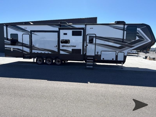 The very best adventures are waiting for you with the Grand Design Momentum toy hauler! The Momentum combines extreme play with extraordinary living so that you can have the best of both worlds. You won't have to miss out on any of your favorite features from home because the Momentum has just about everything. With the Weather-Tek insulation, you won't have to let anything hold you back from getting out and taking an adventure during any season, and the Tuff Ply gas-and-oil-resistant garage flooring is a quality base for your toys. The flush-mount tie-downs rated for 2,500 LBS will keep your gear in place as you travel, and there is a protective diamond plate on the garage sidewalls for additional protection. Some of the options that you can choose to add to your Momentum are the Solitude solar system and Rockford Fosgate speaker package.