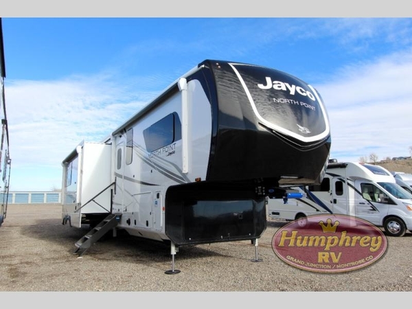 With any North Point fifth wheel by Jayco you begin with a strong foundation with a custom frame, designed and sized specifically to best support each unit. Constructed with Stronghold VBL aluminum framed, vacuum bond laminated walls and the Magnum Truss XL6 roof system with an Alpha roof membrane system, which is the strongest tested roof in the industry. The 5-Star Handling package is included with H-rated tires with TPMS, a MORryde rubber pin box, Dexter axles with Nev-R-Adjust brakes, MORryde CRE-3000 rubberized suspension and wet bolt fasteners and bronze bushings. The interior has handcrafted hardwood glazed doors and drawers, vinyl flooring throughout, an integrated under-mount sink in the main bathroom, plus so much more you just have to see one to believe it all!