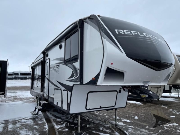 With any Reflection 150 Series fifth wheel by Grand Design, there is more available payload capacity and a broader range of half-ton trucks capable of towing this fifth wheel, and no slider hitch is needed thanks to the 90-degree turning radius which makes them short bed friendly and easier to tow. The mandatory Ultimate Power package provides a "One-Touch" automatic leveling system and a detachable power cord with LED light for easy setup, plus motion sensor pass-through lighting and entry lighting, and the Tire Linc TPMS will help you stay safe on the road. The interior offers residential luxury from the cabinetry and gunstock hardware plus the booth dinette to the residential-style window treatment. Make your refined decision today!